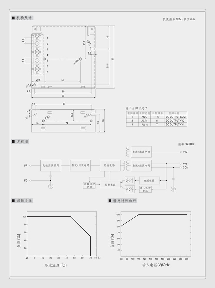 输入电压范围 85~264VAC/120~370VDC(承受5秒钟300VAC高压输入不损坏)