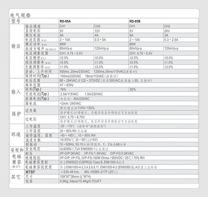 过载保护 过电流点在110%~150%,自动侦测自动复原