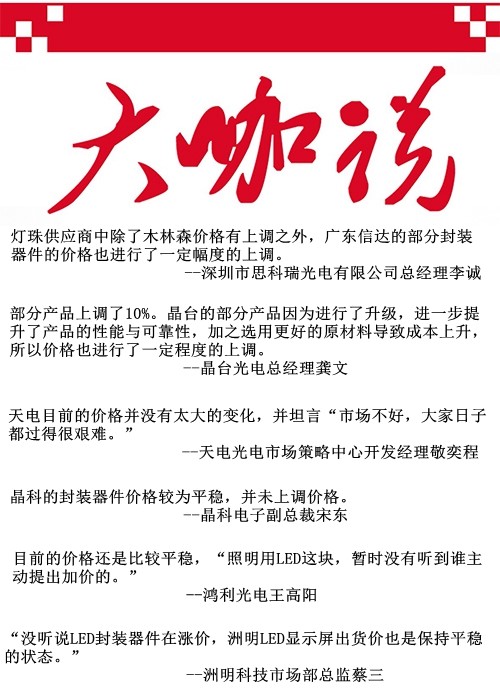 行业似乎还在被"价格战"弥漫,互相比拼低价的时期尚未过去。不过,近期业内朋友圈内却有部分"涨价"的声音出现。LEDinside编辑便就此事致电几位行业人士。