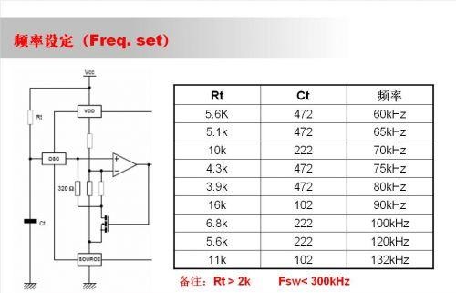 这里确定芯片工作频率为70KHz,芯片的频率可以通过外部的RC来设定,工作频率就等于开关频率,这个外设的功能有利于我们更好的设计开关电源,也可以采取外同步功能。与UC384X功能相近。
