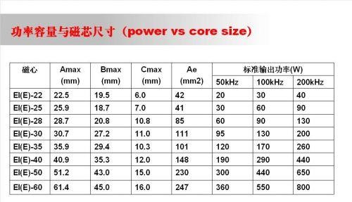 对于磁芯的选择,是在开关频率和功率的基础,更多的是经验选取。当然计算的话,你需要得到更多的磁芯参数,包括磁材,居里温度,频率特性等等,这个是需要慢慢建立的。