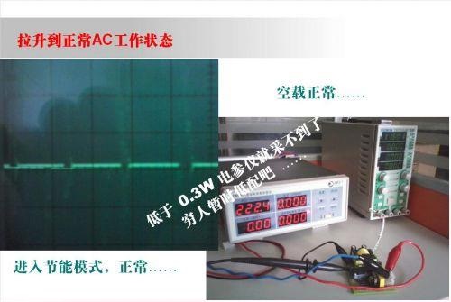 开关电源的AC输入接入调压器,或者AC输入接入功率计再接至调压器,调压器处于0Vac;示波器接在STVIPER53DIP的DS两端或初级绕组两端亦可,交流耦合;万用表电压档测输出,并空载。