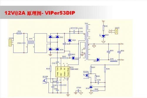 R103,C105:这部分是STVIPER53DIP设定开关频率的,70kHz可查datasheet中的频率设定表,可知R103-10kC105-222