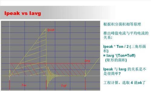 这里的4是一个经验值,当然也是我自己独家的经验。至于推导,不用那么麻烦,看下面的图,你就明白了,下面是DCM时的电流波形;至于CCM加一个平台,自己可以推导,很简单。